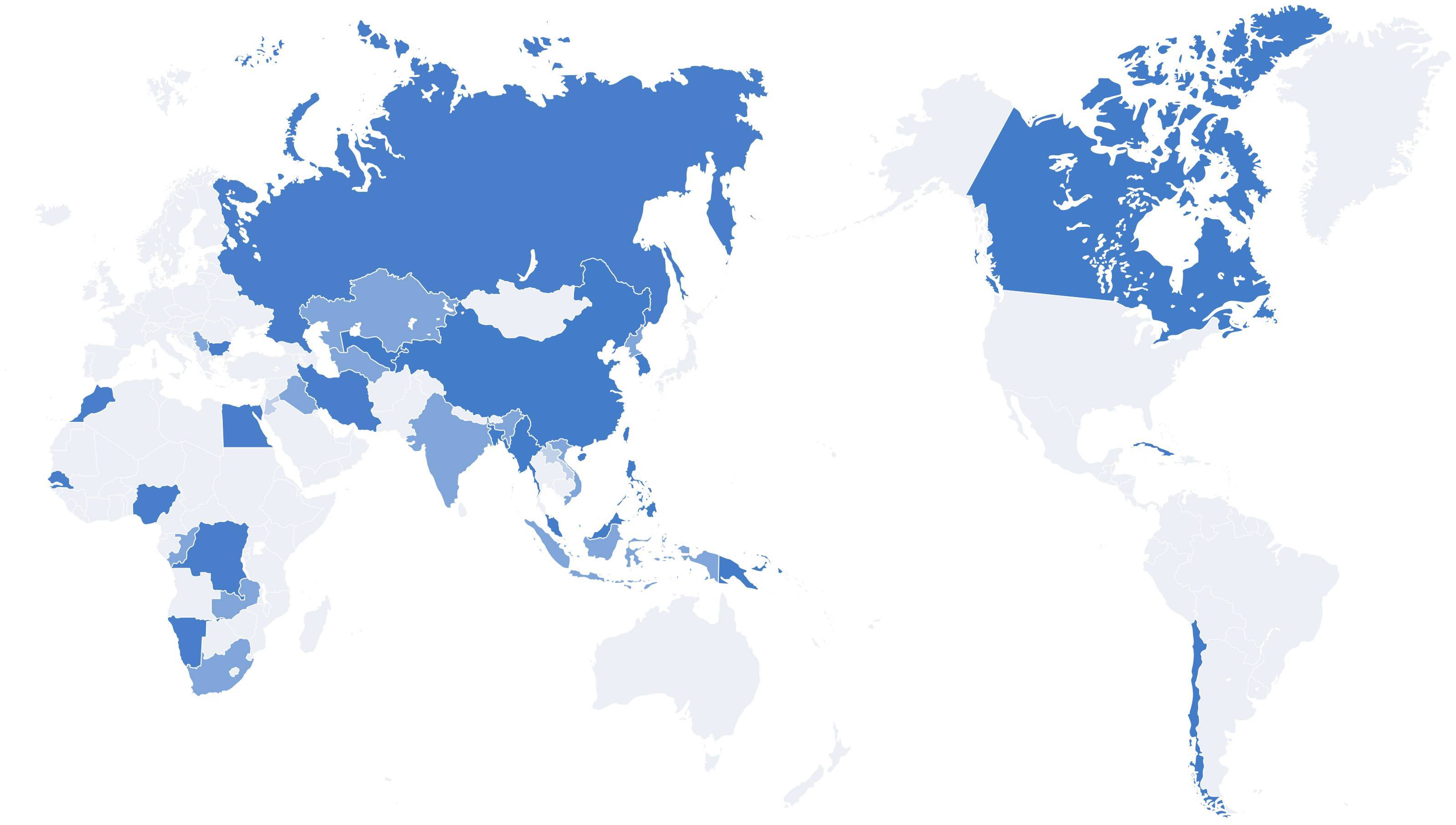 Северная Америка, Южная Америка, Африка, Южная Азия и Юго-Восточная Азия.